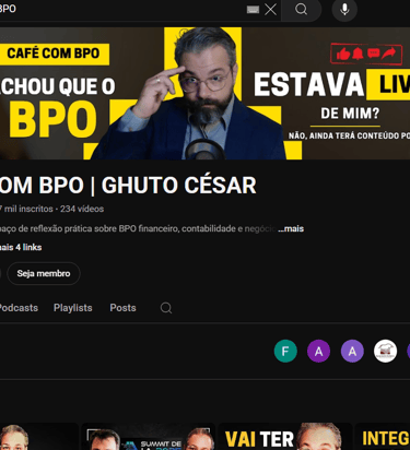 Esse canal é um espaço de reflexão prática sobre BPO financeiro, contabilidade e negócios. Aqui compartilho minha visão como empresário que vive o que fala — estruturando operações, formando parcerias e crescendo com consciência. O foco é um só: mostrar o que funciona na realidade, com clareza, contexto e propósito. 📌 O que você vai encontrar: Estratégias reais de posicionamento e crescimento no BPO financeiro. Bastidores do projeto “Do Zero a 30 Clientes” — documentado, sem roteiro, sem romantização. Reflexões sobre decisões, erros, aprendizados e construção de autoridade. Ferramentas, processos e ideias testadas no dia a dia. Se você está buscando entender como crescer com consistência — e não com atalhos —, esse canal foi feito pra você.