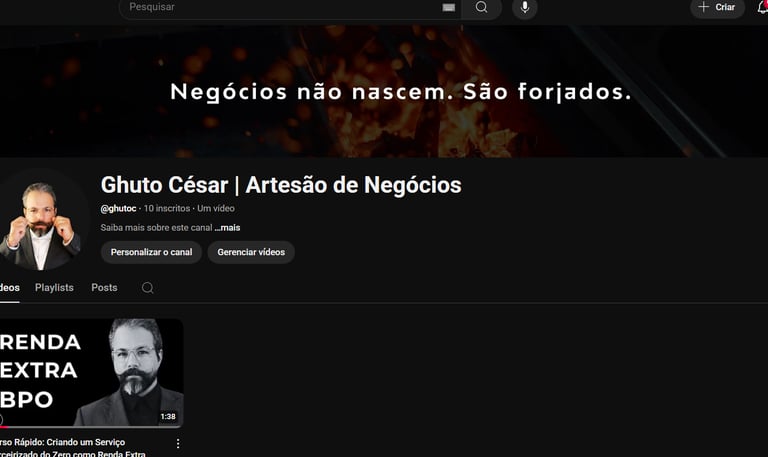 Aqui não tem fórmula pronta, só a forja real dos negócios na prática. Este canal é pra quem já entendeu que o mercado não é um conto de fadas. Eu falo de negócios como eles são: pressão, teste, erro, ajuste e construção, sem romantismo e sem filtro. Compartilho visões, provocações, estratégias e aprendizados de quem vive o jogo, não de quem só ensina de longe. Se você busca ideias que vão além do óbvio e quer construir algo sólido, mesmo na turbulência, esse canal é pra você.